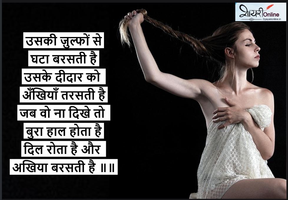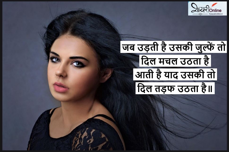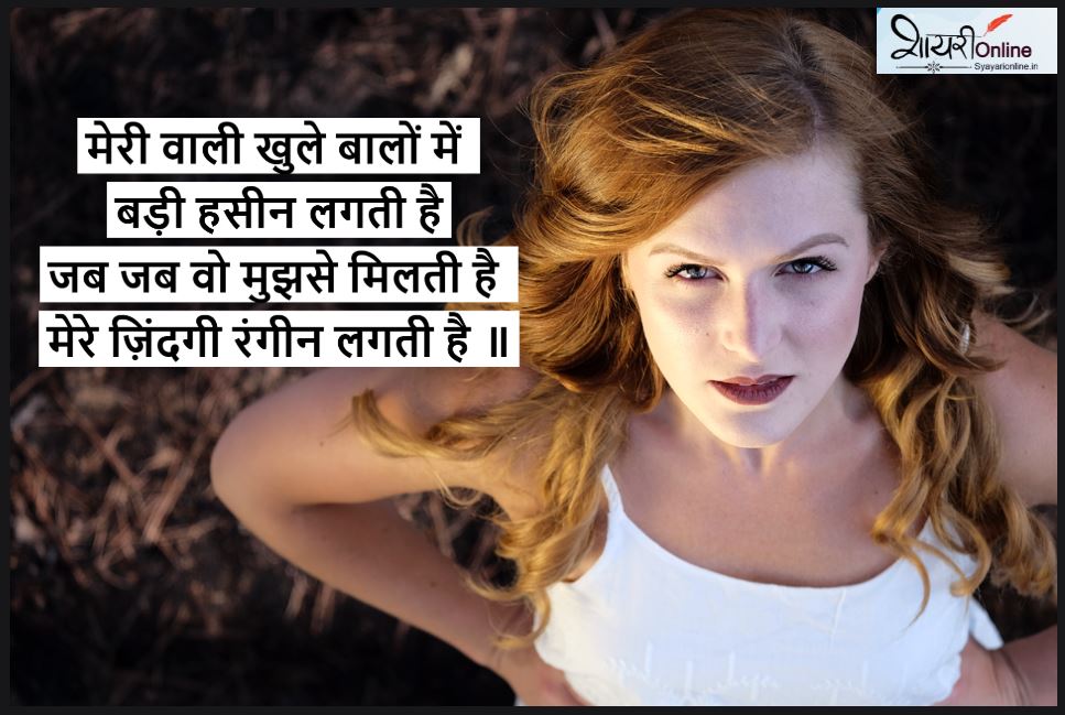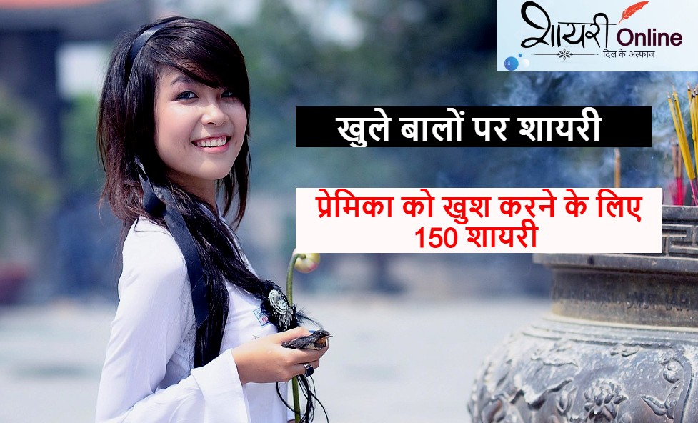 खुले बालों पर शायरी khule balo par shayari- दोस्तो जब लड़की की तारीफ करनी होते है तो उनकी आँखें उनके होठ, कमर और उसके बालों की बखूबी से तारीफ की जाती है। लड़की की वास्तविक बाहरी पहचान उनके बाल है। इसलिए लड़कियों को बालों की तारीफ करने वाले लड़के ज्यादा पसंद आते है। अगर आप भी अपने प्रेमिका के बालों की तारीफ करना चाहते है तो आप इन शयरियों के माध्यम से कर सकते है । उम्मीद है की इनमे से आपको सभी शयरी पसंद आएगी।